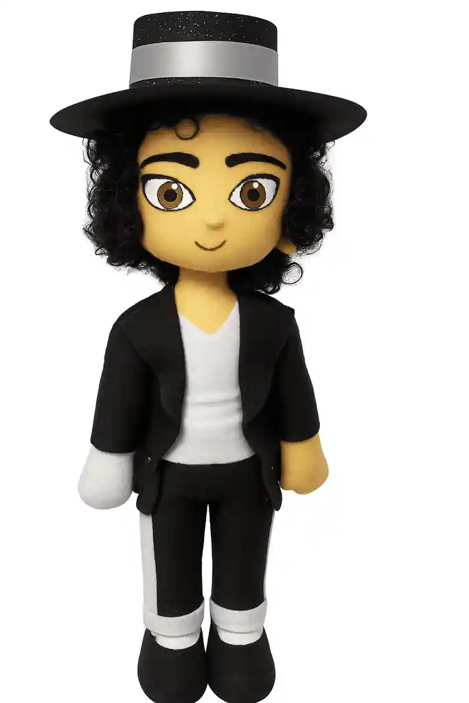 Este muñeco de tela inspirado en Michael Jackson es una pieza única y llena de estilo. Elaborado con materiales suaves y de alta calidad, presenta detalles característicos como su sombrero, chaqueta negra y guantes blancos, que evocan la icónica imagen del artista. Ideal para coleccionistas, fanáticos o como decoración temática, es un artículo llamativo que combina ternura, diseño y homenaje a una leyenda de la música.