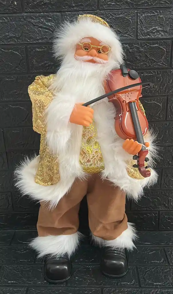 MUÑECO PAPA NOEL MUSICAL CON MOVIMIENTO VIOLIN 65CM DE ALTO TRAJE DORADO COD.4180 (( FUNCIONA CON TRES PILAS AA NO VIENEN INCLUIDAS ))