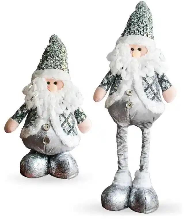 Decora tu hogar esta Navidad con un Santa moderno y elegante en tonos plateados. Su diseño premium con piernas extensibles se adapta fácilmente a mesas, pasillos, salas y vitrinas. Agrega un toque acogedor y brillante a tus celebraciones y sorprende a tus invitados con un adorno único y duradero. Ideal para hogares, oficinas, vitrinas comerciales y decoración temática navideña. Personaje: Santa Claus Uso: Decoración navideña Estilo: Elegante – Moderno Piernas extensibles para ajustar altura Liviano y fácil de ubicar en cualquier espacio