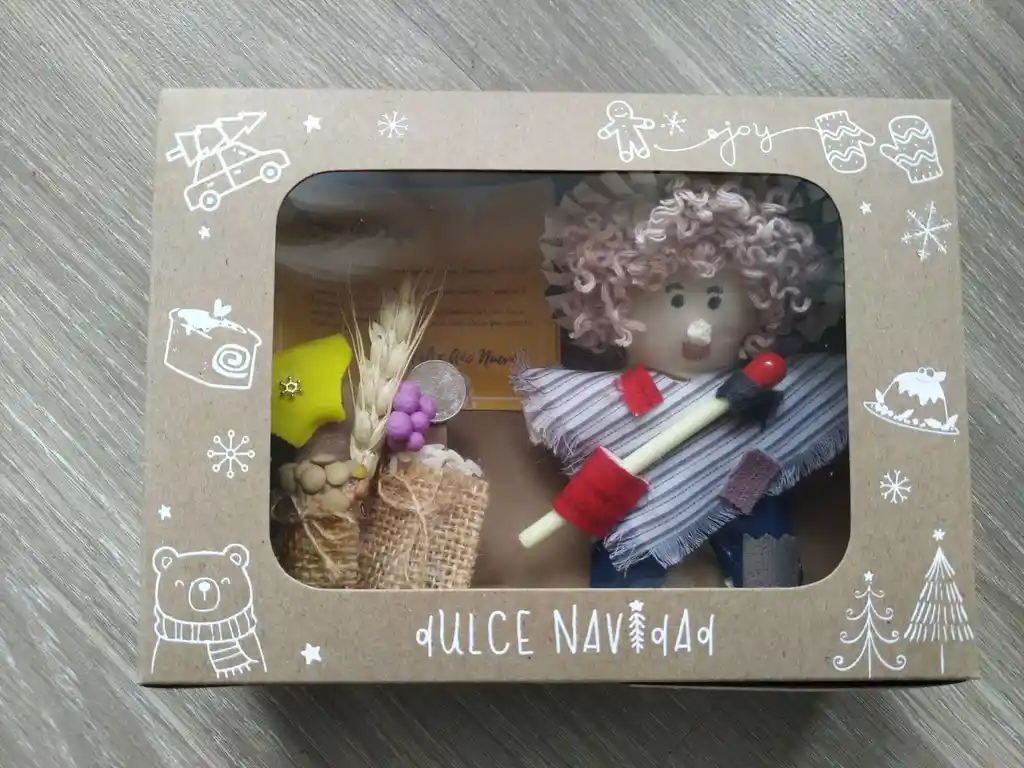 Lleva tu muñeco Año Viejo para quemar este Fin de Año, Elaborados 100% a mano y en material reciclable. Envíos a todo el país. El kit Contiene: 1 Muñeco Año Viejo elaborado a mano y en material reciclado (los colores pueden variar al de la foto) 1 Lista de Propósitos para el Año Nuevo 1 Lista de Cosas para Dejar Atrás 1 Estuche de Cartón decorado 1 Lapicero diseño fosforo 1 bultico de arroz 1 bultico de lentejas 1 panty amarillo Trigo Moneda Uvas 3 Fósforos Encuentra los fósforos en el sombrero del Muñeco Año Viejo.