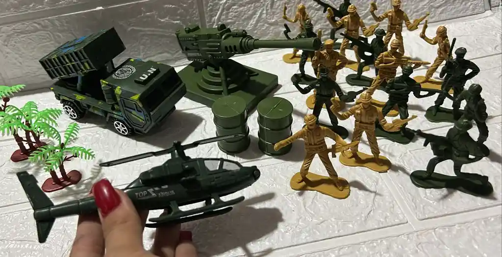 MUÑECOS MILITARES + CARRO TANQUE + HELICOPTERO - JUGUETES PARA NIÑOS COD.2961