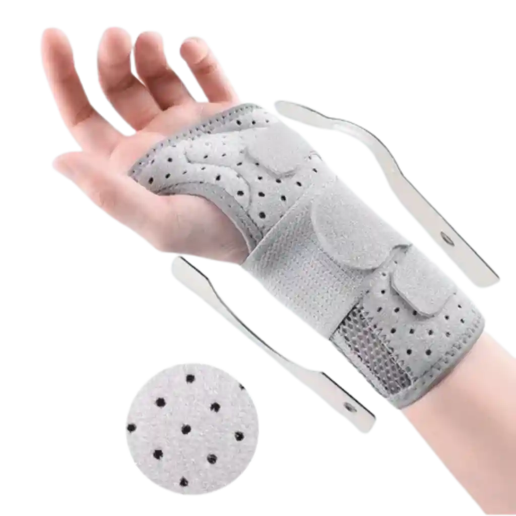 Muñequera con férula diseñada para brindar soporte, estabilidad y alivio del dolor en casos de túnel del carpo, esguinces de mano, lesiones de ligamentos, tendinitis y sobrecarga muscular. Ayuda a mantener la muñeca en una posición correcta, favoreciendo la recuperación y reduciendo la tensión. Fabricada con material cómodo, transpirable y ajustable, permite un uso prolongado tanto de día como de noche. Incluye férula interna que proporciona una sujeción firme sin limitar completamente el movimiento de los dedos. ✨ Características destacadas: 🖐️ Indicada para túnel del carpo, esguinces y lesiones de ligamentos 🦴 Férula interna para mayor estabilidad 🔒 Sistema de ajuste con velcro cómodo y seguro 🌬️ Material transpirable y suave 🤲 Diseño anatómico para mano derecha o izquierda 📏 Tallas M y L surtidas 🎯 Ideal para: Uso diario, recuperación post lesión, trabajo prolongado, actividades repetitivas, descanso nocturno y apoyo terapéutico.