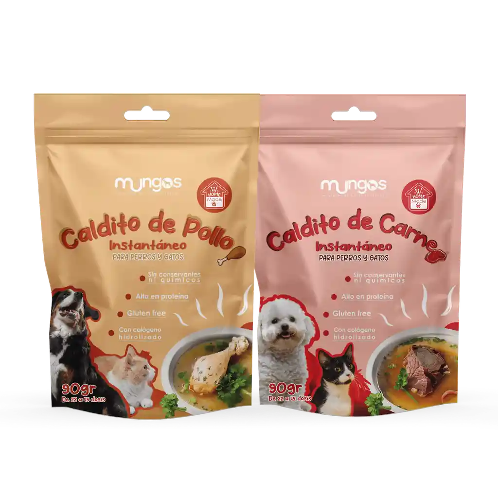 Nutrición reconfortante para perros y gatos. Dos sabores, alto en proteína y sin químicos.