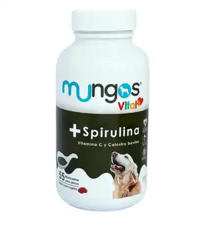 El suplemento Mungos Vital +Spirulina es un alimento complementario diseñado para fortalecer la salud integral de tu perro. Estos 55 masticables con delicioso sabor a carne jugosa combinan los beneficios de la espirulina con vitamina C y calostro bovino, ingredientes clave para potenciar el sistema inmune, mejorar la digestión y brindar un efecto antioxidante. Es la opción ideal para mantener a tu mascota vital, protegida y con energía, ofreciéndole un refuerzo nutricional de alta palatabilidad que le encantará recibir como premio.