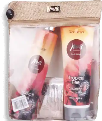 Fragancias femeninas Muss, de crema corporal splash y mini brochas, en un práctico empaque para llevar a todo lugar