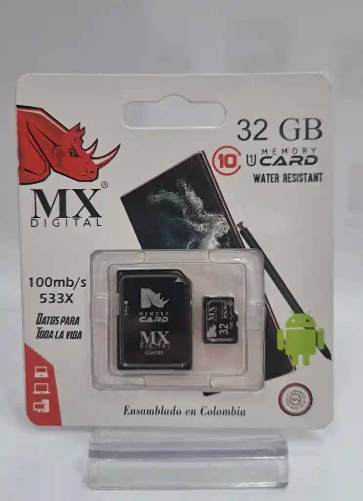Capacidades 4GB,8GB, 16GB Velocidad 45MB/seg Interfaz(ces) USB 2.0 Dimensiones 11mm x 15mm x 1mm Temperatura de operación -25 a 85 C Resistencia al agua IP67 Compatibilidad con sistemas Windows 2000 Hasta Windows 10 Mac OS X o superior Linux V.2.6x+, Chrome OS. Android 2.1 en adelante AMPLÍA EL ALMACENAMIENTO DE TU DISPOSITIVO MÓVIL Estas tarjetas de memoria agregan espacio de almacenamiento al instante a cualquier dispositivo que tenga una ranura para tarjeta Micro SD. Al ampliar la memoria de tu teléfono inteligente o tableta, puedes capturar más fotos y videos, guardar más archivos y disfrutar de tu música favorita dondequiera que vayas. GRABA VIDEOS HD CON TU TELÉFONO MÓVIL Estas tarjetas son totalmente compatibles con teléfonos móviles, equipos portátiles, tabletas y otros dispositivos que admiten el formato de tarjeta Micro SD, y tienen la capacidad de grabar varias horas de video HD (720p). DISEÑO DURADERO Diseñadas para resistir las condiciones más extremas, las tarjetas Micro SD C10 de MX son resistentes al agua, a prueba de golpes y a prueba de rayos X. Pueden funcionar a temperaturas que oscilan entre los -13 °F y los 185 °F, de modo que puedes disfrutar de tus datos multimedia móviles en casi todas las condiciones climáticas. Incluso si tu dispositivo no perdura, la tarjeta de memoria de MX sí durará