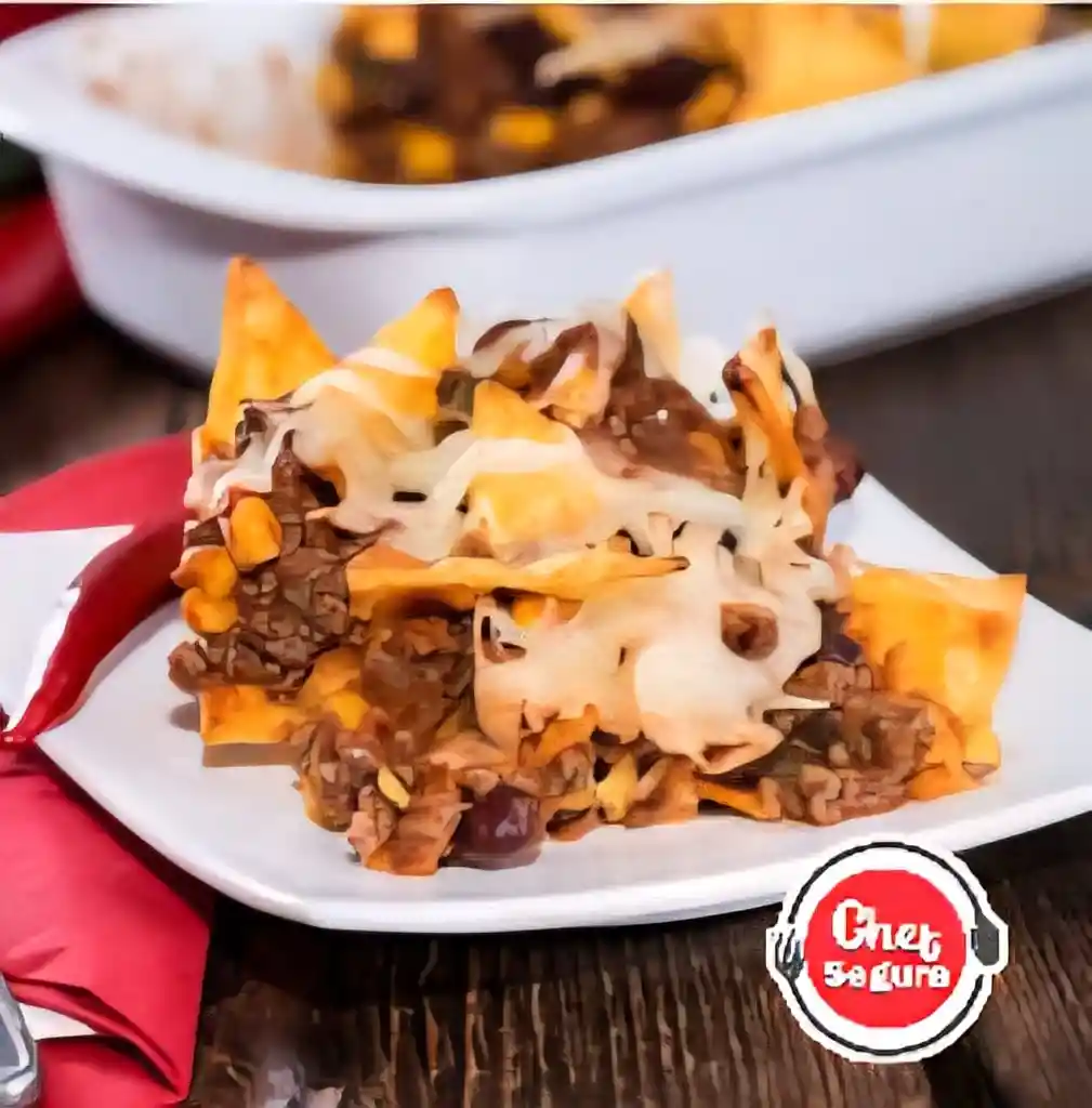 Totopos de tortilla de maíz acompañados de chili con carne (receta especial de la casa) con topping de guacamole, queso cheddar y crema agria. ¡Un clásico de la gastronomía Tex-Mex!