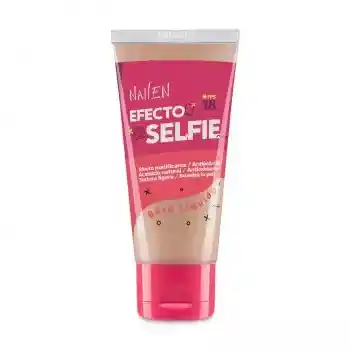 La base líquida Efecto Selfie es un producto multi beneficios, con cobertura media y acabado mate que tiene una acción antioxidante,} anti polución, controla el brillo de tu piel y la protege de los rayos del sol con SPF de 18. Encuéntralo en subtono amarillo y cálido en los tonos 1,3 y 5 y en subtono rosado o frio en los tonos 2,4 y 6.