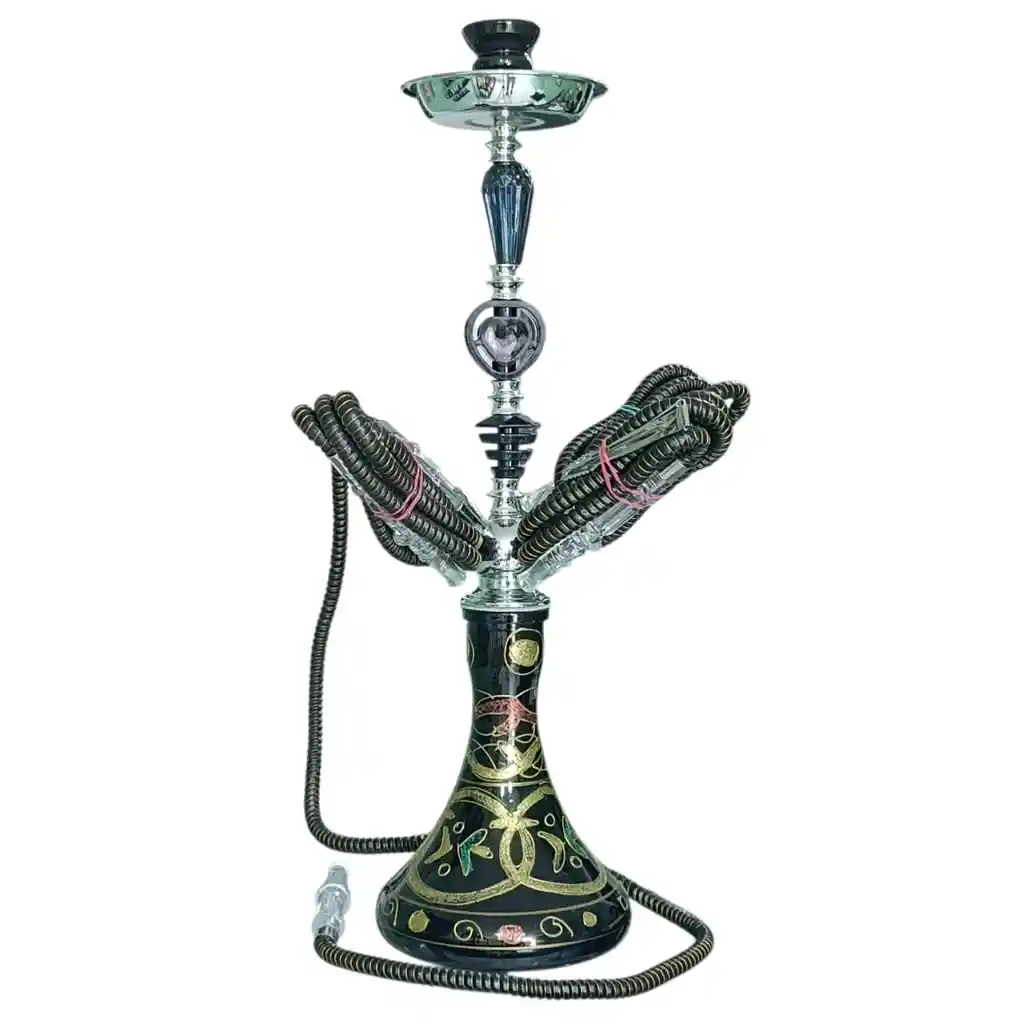 Esta narguila grande ofrece una presencia imponente con su elegante acabado negro, realzado por detalles en dorado y plateado que le dan un toque lujoso y moderno. Equipada con 4 mangueras, es perfecta para compartir en grupo y disfrutar sesiones amplias con un flujo de aire suave y constante. Su tamaño grande garantiza un rendimiento superior, humo más denso y una experiencia más fresca. Fabricada con materiales resistentes, cuenta con una base robusta y un cuerpo metálico duradero. Ideal para quienes buscan una narguila de alto nivel, vistosa y de excelente desempeño.