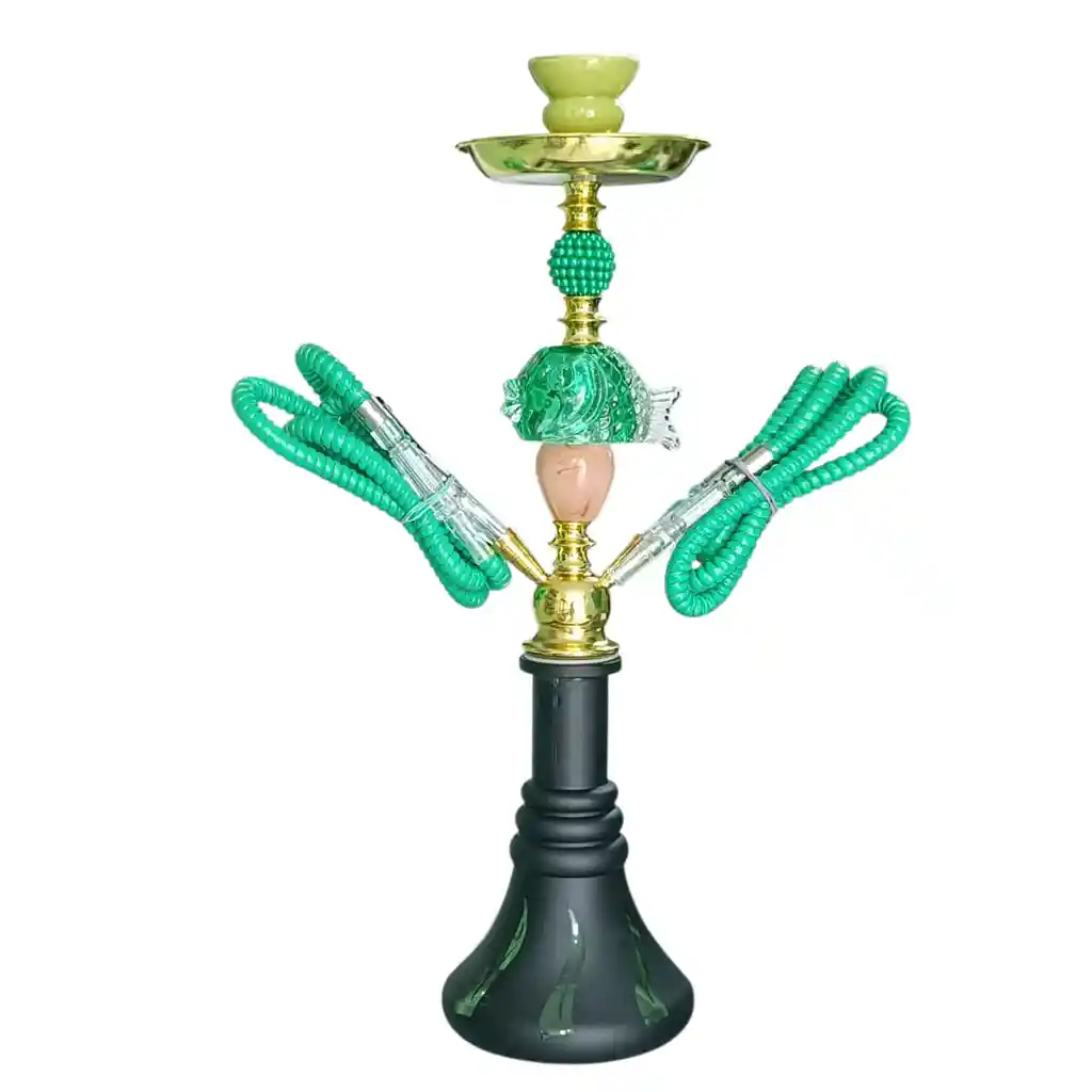 Esta narguila mediana destaca por su acabado elegante con detalles en verde, dorado y negro, creando una apariencia moderna y llamativa. Equipada con 2 mangueras, es perfecta para compartir y disfrutar sesiones cómodas y suaves. Su tamaño mediano ofrece un excelente equilibrio entre portabilidad y rendimiento, con un flujo de aire estable y caladas limpias. Fabricada con materiales resistentes, incluye una base firme y un cuerpo metálico que garantiza durabilidad. Ideal para quienes buscan estilo, funcionalidad y una experiencia de narguileo superior.