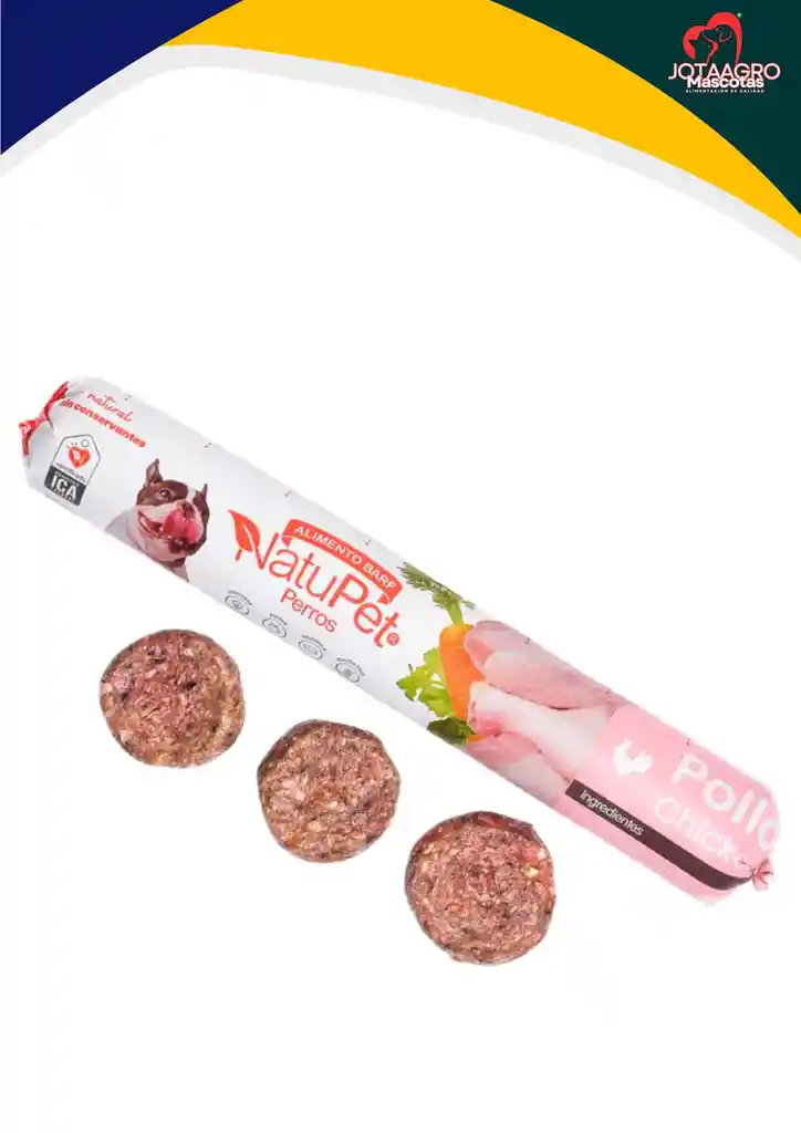 Barra de carne y verduras con proteina de pollo , se puede dar crudo o calentar en sarten (no agregar aceites )