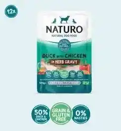 Mima a tu mascota con el Paquete de Variedad Naturo Adult Dog Sin Granos y Sin Gluten, que contiene un 50% de proteína de Pollo, Pato y Pavo en salsa de hierbas. Esta comida húmeda totalmente natural es ideal para estómagos sensibles y apoya la salud de un perro.