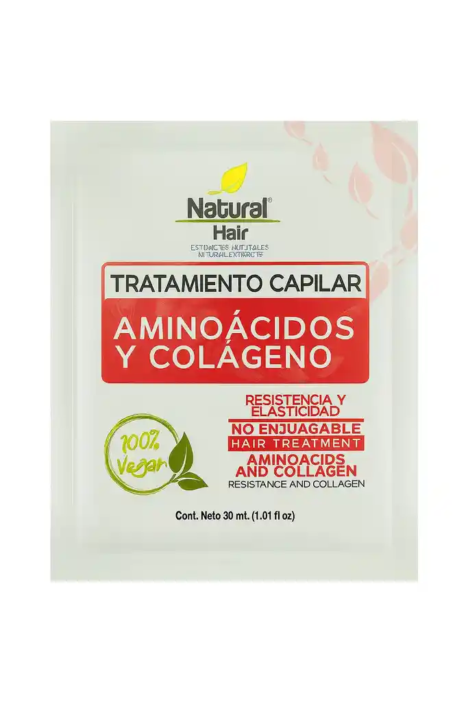 🌿✨ Tratamiento Capilar Aminoácidos y Colágeno – Natural Hair ✨🌿 Devuélvele la fuerza, elasticidad y vitalidad a tu cabello con este poderoso tratamiento sin enjuague 💆♀️💖. Su fórmula enriquecida con aminoácidos y colágeno fortalece cada hebra desde la raíz hasta las puntas, aportando resistencia y un brillo saludable 💪✨. Ideal para cabellos débiles, quebradizos o con falta de elasticidad, este tratamiento nutre profundamente y ayuda a prevenir el daño diario 🌬️🌞. Además, es 100% vegano, respetuoso con tu cabello y con el planeta 🌱💚. 💗 Cabello fuerte, flexible y radiante… todos los días.