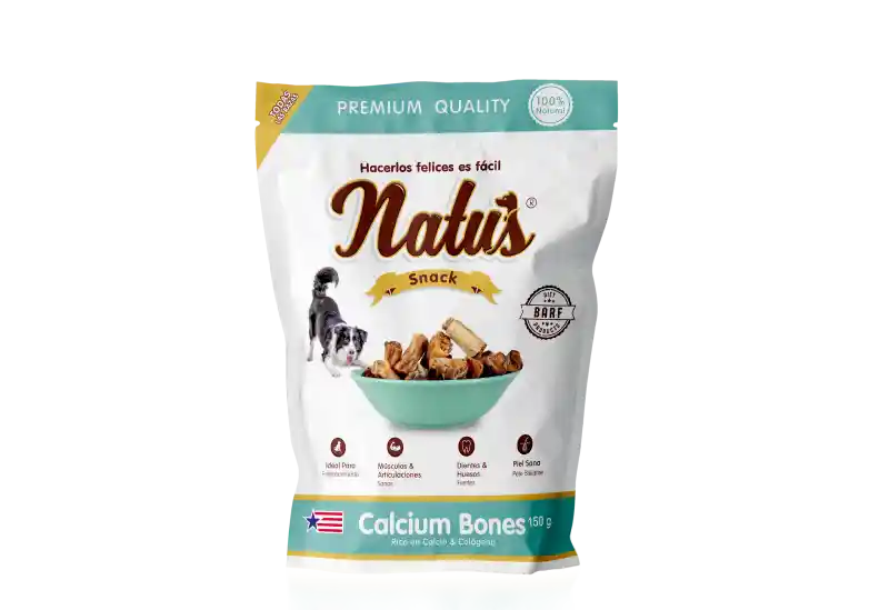 Natus® Calcium Bones snack 100% natural, es un suplemento alimenticio para perros adultos de todas las razas. Buena salud. Vitaminas: Nuestra receta deliciosa 100% natural, contiene proteínas de alta calidad, ácidos grasos, minerales y vitaminas de alta biodisponibilidad que tu perro necesita para mantener su salud y continúe viéndose feliz y jugueton.
