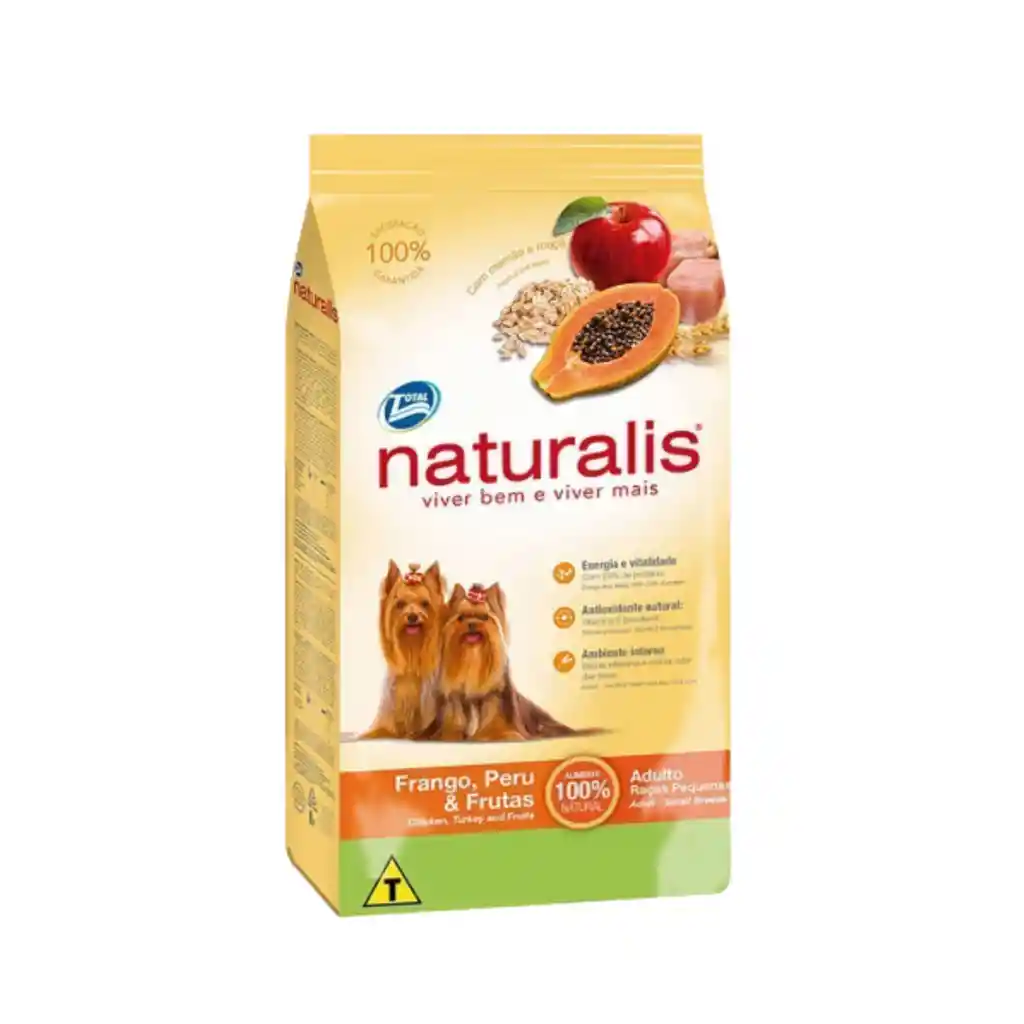 Alimento seco para adultos de razas pequeñas de pavo, pollo y frutas.