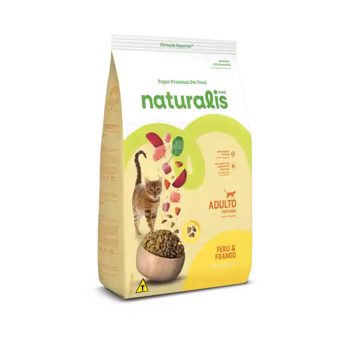 Naturalis Gatos Adultos Castrados Pollo y Pavo es un alimento Super Premium elaborado con proteínas seleccionadas, así como granos enteros, extracto de espinacas, zanahorias y pulpa de remolacha que ofrecen un sabor diferenciado al paladar de los gatos y aportan más energía y vitalidad. Tiene antioxidantes naturales que ayudan en las defensas del organismo, contribuyendo a una vida larga y saludable, sin colorantes ni conservantes artificiales. Ayuda a mantener el peso ideal: Calorías reducidas y L-Carnitina: componente natural que ayuda en la quema de grasa. Ambiente interno: Salud intestinal y heces más firmes, con menor volumen y olor. Salud del tracto urinario: Ayuda a controlar el pH de la orina.