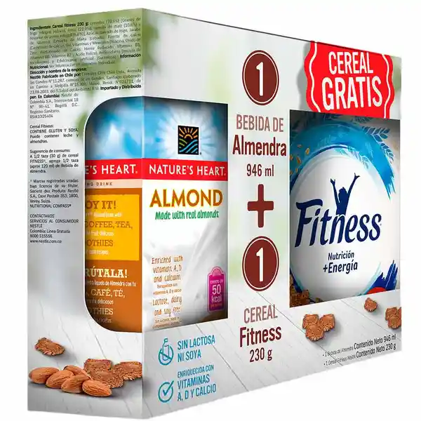 Contiene 2 Unidades. Natures Heart Bebida de Almendras 946 mL + Fitness Cereal 230 g.