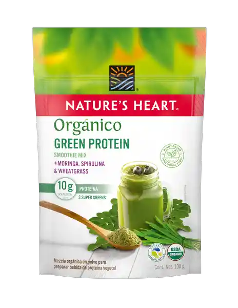 Disfruta de una deliciosa bebida con Natures Heart, elaborada con ingredientes de la mejor calidad y de origen natural, potentes proteínas vegetales, en combinación con 3 superverdes: moringa, hierba de trigo, espirulina, una mezcla vegana innovadora como ninguna otra. Ideal para cualquier momento del día. Contiene 100 gramos.
