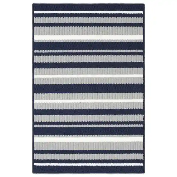 Este Bonito Tapete Decorativo Para Interiores de Náutica te Permitirá Decorar un Corredor la Cocina la Sala o Incluso Una Habitación. Cuenta Con un Tejido Acanalado Con Diseño de Rayas y Acabado Con Mechones. Le Dará un Toque de Elegancia a tu Espacio y Podrás Combinarlo Con el Ambiente de tu Hogar.