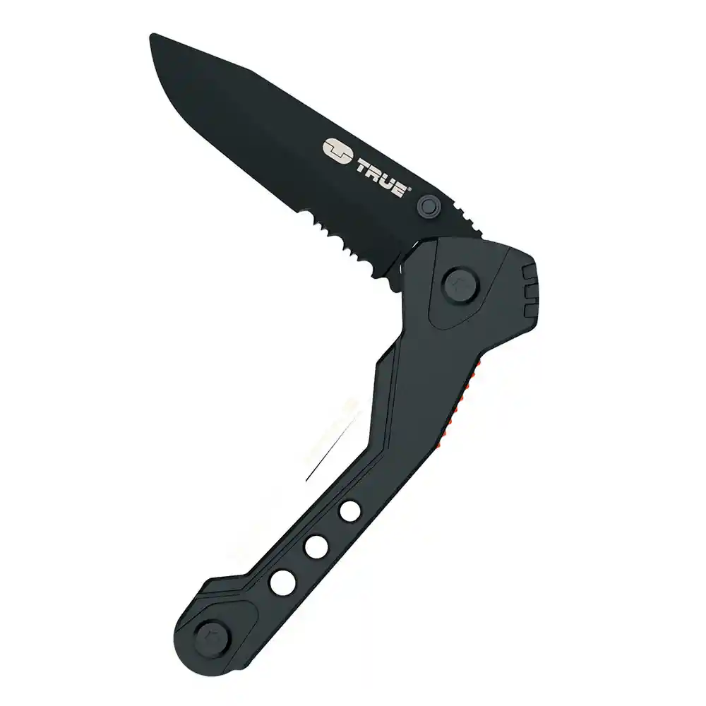 True Blade El Trueblade es un cuchillo de kit ligero y robusto. Con una hoja de acero inoxidable oxidado negro de 6 cm parcialmente dentada, el compañero perfecto para cualquier tarea. Con un clip de acero/bolsillo integrado en el reverso para una opción de transporte fácil, un rellano para el pulgar acanalado para mayor agarre, un botón para el pulgar integrado que ayuda a abrir con una sola mano. Trueblade también cuenta con un bloqueo de revestimiento; un mecanismo de bloqueo de resorte incorporado que mantiene la hoja extendida de forma segura cuando está en uso y detalles de color naranja brillante que hacen que el cuchillo sea fácil y rápido de encontrar cuando lo necesite. Características: Dimensiones: 107 mm (largo) x 30 mm (ancho) x 17 mm (profundidad) Peso : 91g ¿DUDAS?, pregúntanos estamos para ayudarte ¡Banimported, calidad y diseño!