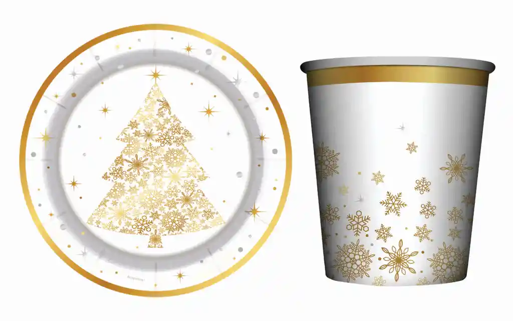 ¡Celebra la magia de la navidad y año nuevo con elegancia! El Platos y Vaso Metalizado Invierno Dorado es perf...Ver más