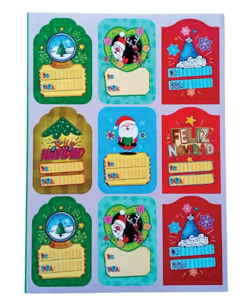 9 Tarjetas adhesivas motivos surtidos para Regalo de Navidad, viene una hoja con 9 stickers. Los modelos varían de acuerdo a la disponibilidad de la tienda