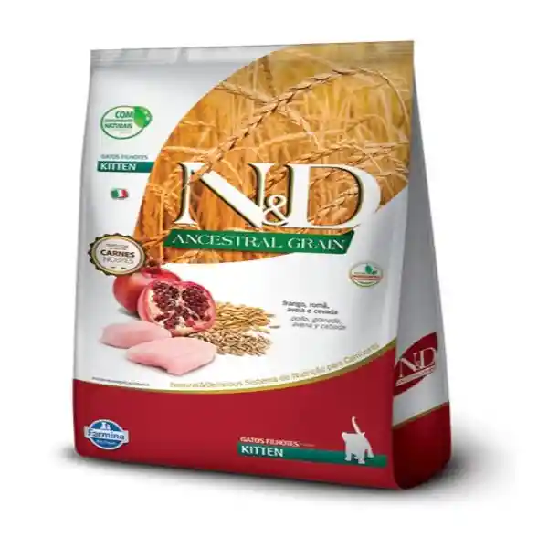 El ND Ancestral Fel Frango Kitten 0,4kg es un alimento seco premium especialmente formulado para gatitos en crecimiento (de 1 a 12 meses de edad). Este producto de la línea Farmina está diseñado para satisfacer las altas necesidades energéticas y nutricionales de los gatos jóvenes, brindándoles los nutrientes esenciales para un desarrollo saludable. La fórmula está inspirada en la dieta natural y biológica de los felinos, utilizando ingredientes de alta calidad y sin cereales, lo que lo convierte en una excelente opción para asegurar un crecimiento adecuado en esta etapa crucial de su vida.