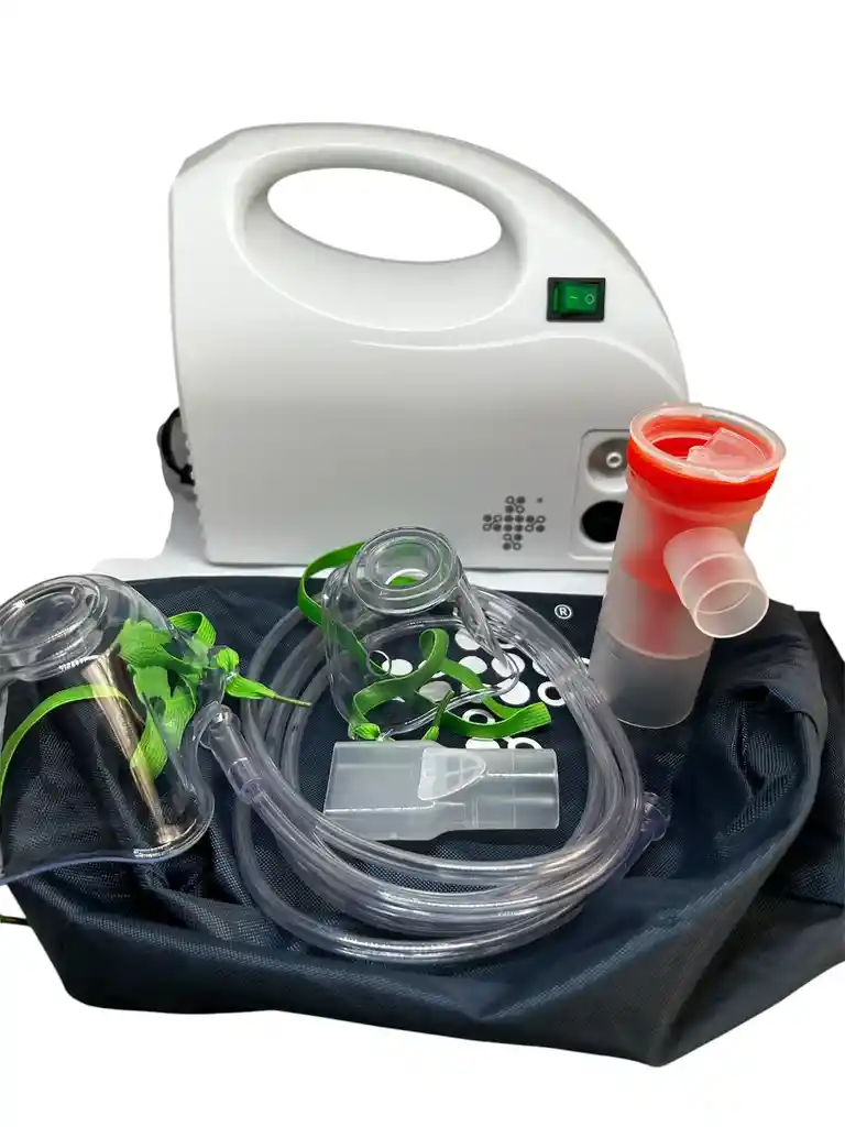 Un nebulizador es un aparato que divide los medicamentos líquidos en muy pequeñas gotas. La nube, se conduce por un tubo de plástico que está unido en uno de sus extremos a la salida del aparato y en el otro a una pieza plástica que se coloca sobre la boca o se introduce en las fosas nasales.