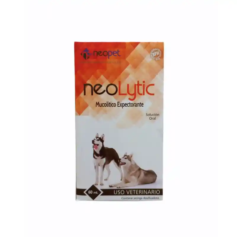 Neolytic Oral FCO x 60 ml - Mucolítico y Expectorante para Mascotas Neolytic Oral FCO x 60 ml es el tratamiento ideal para el cuidado respiratorio de tus queridos perros y gatos. Este potente mucolítico y expectorante está formulado para disolver y expulsar las secreciones mucosas, mejorando la respiración y aliviando la tos en situaciones de congestión. Su uso oral permite una administración fácil y efectiva, garantizando el bienestar de tu mascota. Beneficios Clave de Neolytic Oral Alivio Eficaz de la Tos: Reduce la tos de manera significativa, proporcionando un mayor confort respiratorio y mejor calidad de vida. Acción Mucolítica Potente: Facilita la eliminación de mucosidades, permitiendo que tu mascota respire con mayor claridad y facilidad. Fórmula Segura y Aprobada: Perfectamente segura para mascotas, este producto ha sido desarrollado específicamente para perros y gatos. Fácil de Administrar: Se puede mezclar fácilmente con la comida o administrar directamente, facilitando el tratamiento sin complicaciones. Modo de Uso de Neolytic Oral FCO x 60 ml Administrar por vía oral, mezclando el producto con la comida o dándolo directamente. Seguir las dosis recomendadas según el peso y la condición de tu mascota para asegurar un tratamiento efectivo. Consultar a un veterinario si los síntomas persisten o empeoran, garantizando la mejor atención para tu amigo peludo.