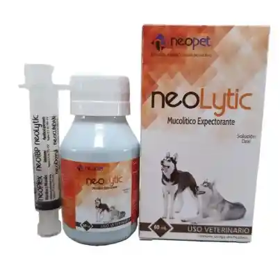 NeoLytic, está indicado en perros y gatos por su acción mucolítica, secretolítica, expectorante y antiséptica, en el tratamiento de las alteraciones broncopulmonares obstructivas de las vías aéreas que cursan con moco viscoso y retención de secreciones, como bronconeumonías, bronquitis aguda y crónica, bronquiectasias, rinotraqueitis, traqueobronquitis y sinusitis. Como coadyuvante de la terapia antimicrobiana. Cada mL de solución oral contiene: Bromhexina 1.8 mg Guayacolato de glicerilo 20 mg Ecucaliptol 5 mg Excipientes c.s.p. 1 mL