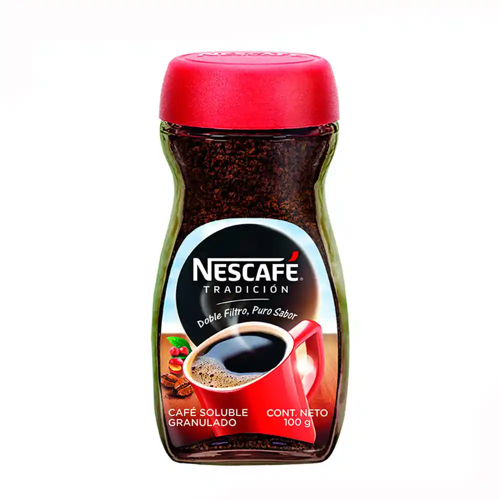 Café instantáneo y soluble. Sabor fuerte, ligeramente ácido. Cuerpo totalmente líquido y de aroma fuerte. Al preparar Nescafé® Tradición con leche, se logra el balance perfecto con un sabor rico y cremoso.