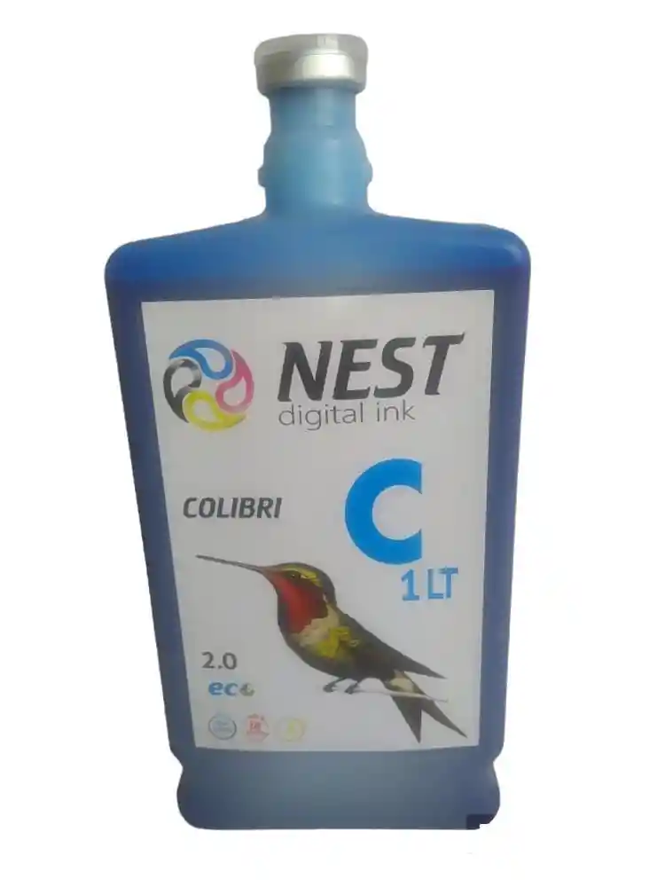 Nest Digital Tinta Eco Solvente Colibrí X 1 Litro con durabilidad de 2 años en exteriores en Cian. Características: - Respetuosa del medio ambiente. - Secado rápido. - Bajo olor, mas ecológico. - Excelente durabilidad al aire libre: 2 años. - Excelente para impresión de alta velocidad. - Gran fluidez, prolongada la vida útil de cabezal de impresión, excelente experiencia de rendimiento. - Amplia gama de colores vivos. CABEZALES COMPATIBLES: Epson Dx4, Epson Dx5, Epson Dx6, Epson DX7, XP600, I3200 é I1600. PRESENTACIONES: Clean Pack 1000 ml - Botella 1 lt. DURACIÓN: 18 Meses. ENVIO Y ALMACENAMIENTO: Temperaturas de almacenamiento y transporte: + 5ºCa + 35ºC almacenar en un lugar fresco y seco, NO directamente en el piso y lejos de la luz directa del sol. ESPECIFICACIONES DE FUNCIONAMIENTO: Temperatura + 19ºC to + 28ºC. Humedad relativa: 30% a 80% sin condensación. Valor litro $ 147,760 Valor Kit $ 591.040