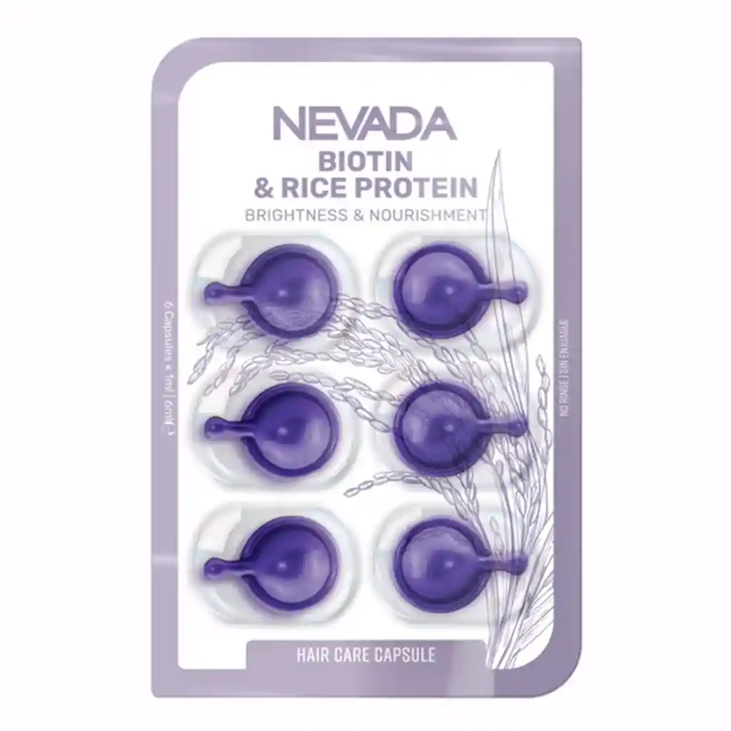 Nevada Cápsulas Biotina & Proteina Arroz, Fortalece Y Aporta Brillo Al Cabello Tratamiento Capilar Natural 6 Cápsulas