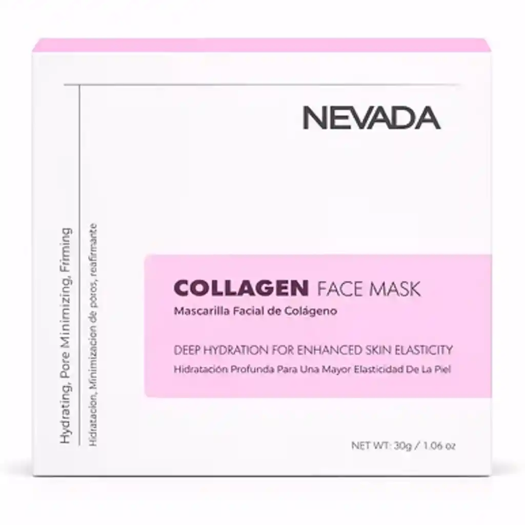 La mascarilla facial de colágeno Nevada es ideal para brindarle a tu piel una hidratación profunda y mejorar su elasticidad desde la primera aplicación. Su fórmula ayuda a revitalizar el rostro, aportando suavidad, firmeza y una apariencia más saludable. Diseñada para nutrir intensamente, contribuye a reducir los signos de fatiga y resequedad, dejando la piel más luminosa y uniforme. Gracias a su efecto reafirmante, ayuda a mejorar la textura del rostro sin sensación pesada, siendo perfecta para complementar tu rutina de cuidado facial y lograr una piel más fresca, hidratada y visiblemente rejuvenecida.