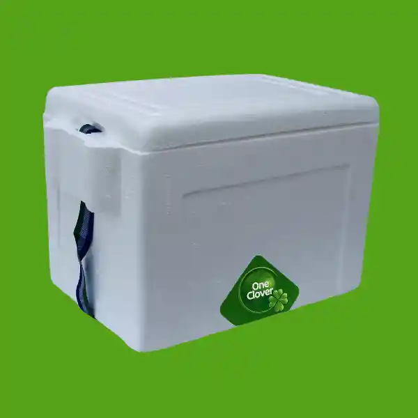 Nevera de poliestireno expandido (Icopor) CON COREA PARA SUJETAR ideal para el transporte de medicamentos, vacunas, alimentos u otros productos que requieran mantener la cadena de frío. lase de material: Poliestireno expandible Densidad: 30 Kg/m³ +/- 10% Medidas internas : Largo: 27.5 cm Ancho: 17 cm Alto: 17.5 cm Medidas externas : Largo: 33 cm Ancho:22.5cm Alto :21 cm Calibre: Pared: 3 cm Tapa: 3.5 cm Capacidad aprox: 10 litros Cierre: El cierre de tapa y caja es totalmente hermético. Partes y presentación Caja, tapa hermética, orejas laterales, reata con de la nevera: remache, empacada en bolsa plástica fabricado: one clover sas