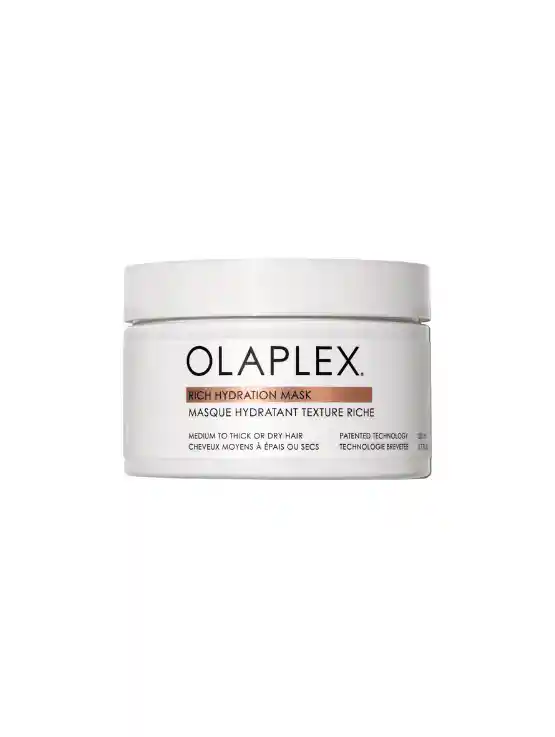 Olaplex Rich Hydration Mascarilla selladora de cutícula, ideal para pelo seco o de medio a grueso. Hidrata al instante, controla el frizz hasta por 5 lavados y fortalece mientras previene la rotura. Aporta brillo intenso, suavidad y manejabilidad incluso en climas húmedos, con resultados visibles desde el primer uso.