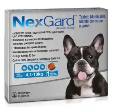 NexGard ® es un producto de administración oral que ayuda a tu mascota en el tratamiento y la prevención de parásitos externos como pulgas, garrapatas y ácaros de la sarna. sabor carne.