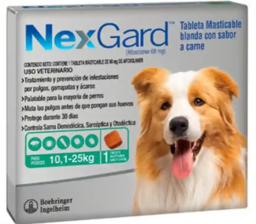 NEXGARD AFOXOLANER 68MG. PARA PERROS DE 10.1 A 25KG. Venta x unidad