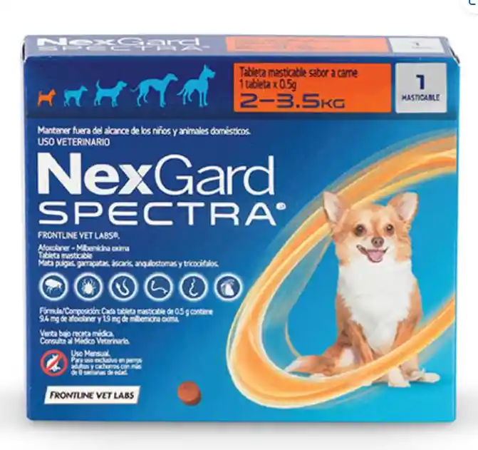 NexGard Spectra® es un delicioso bocado masticable con sabor a carne que protege a tu perro contra pulgas, garrapatas y gusanos intestinales.