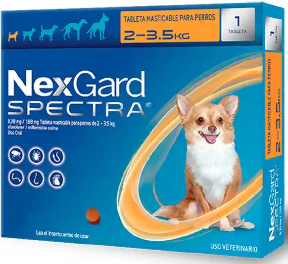 Tableta masticable con sabor a carne que protege a tu perro contra pulgas, garrapatas y parásitos internos. Antiparasitario completo con protección mensual, fácil y seguro de administrar