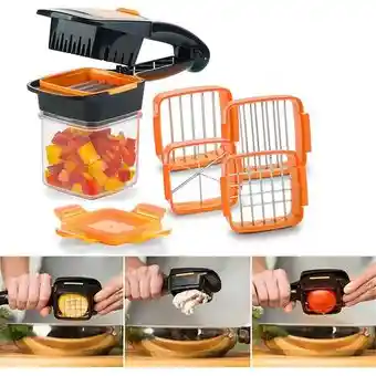 Nicer Dicer Quick es el cortador 5 EN 1 que le permite cortar con un solo movimiento: cubos, bastones, cascos, rodajas finas y gruesas sin ensuciar sus manos. Prepare rodajas de papas crocantes directamente al sartén o decore una bandeja con deliciosos trozos de fruta en diferentes formas.