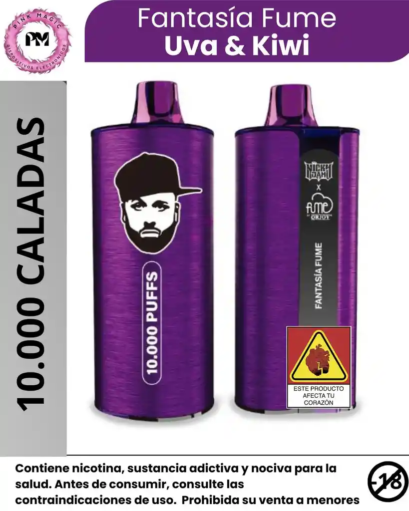 El Nicky Jam Vape 10K es un vape desechable diseñado para quienes buscan sabor intenso, buen rendimiento y estilo urbano. Con hasta 10.000 caladas y 5% de nicotina, ofrece una experiencia potente y duradera, ideal para el uso diario. Su diseño moderno y compacto lo hace fácil de llevar a cualquier parte, mientras que su tecnología garantiza caladas suaves y consistentes desde la primera hasta la última. ⭐ Características destacadas: Hasta 10.000 puffs por dispositivo. 5% de nicotina para un golpe firme y satisfactorio. Sabores intensos y prolongados. Diseño llamativo y portátil. Uso sencillo: listo para usar, sin recargas ni configuraciones. El Nicky Jam Vape 10K combina flow, rendimiento y comodidad en un solo dispositivo. 💨✨