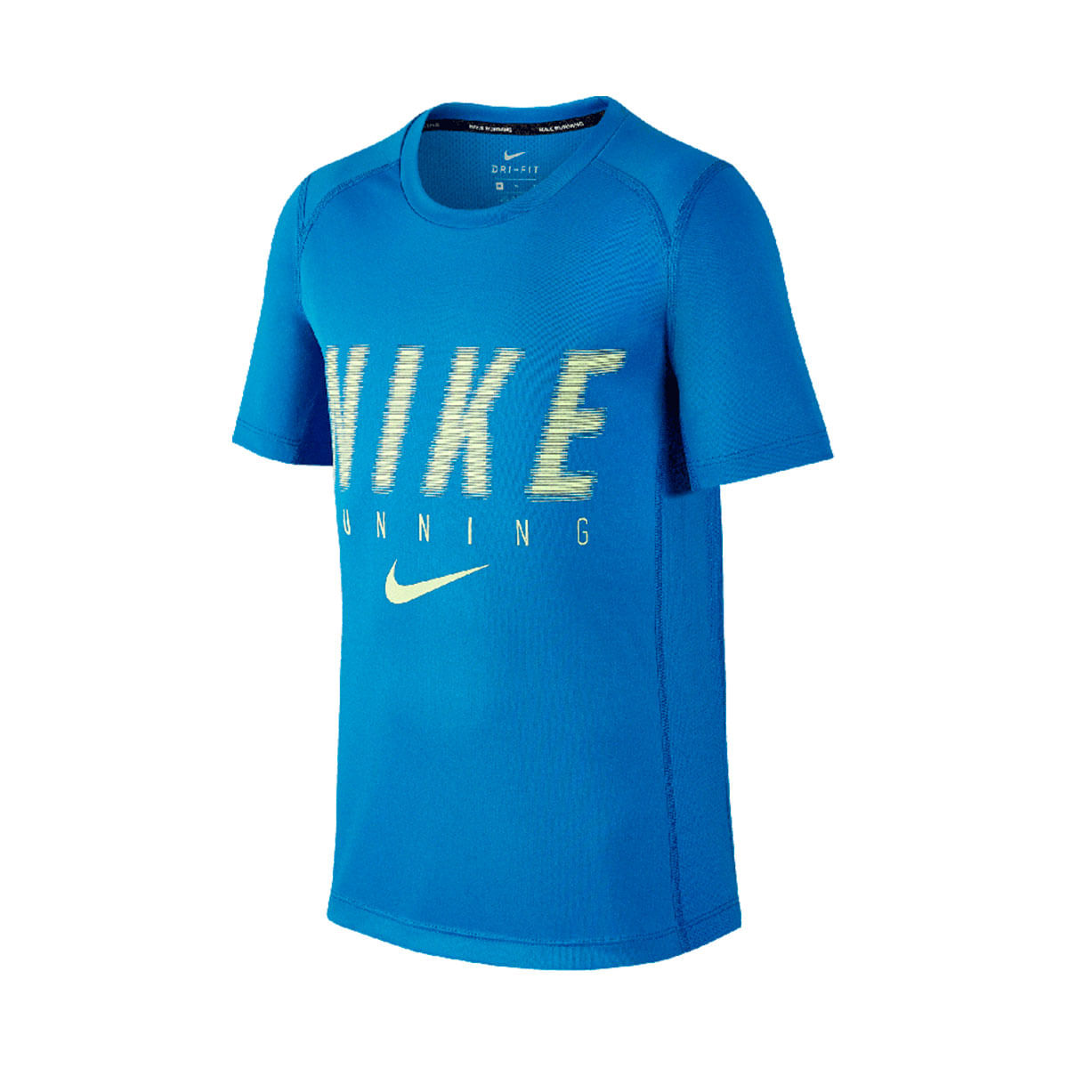 Nike B Nk Dry Top Ss Miler Gfx Camiseta Manga Corta azul de niño para correr Referencia:856057-435 Talla: XS