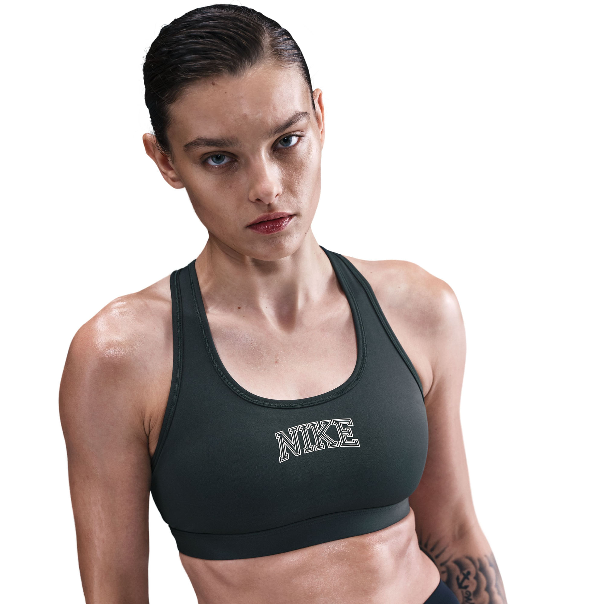 Nike W Nk Swsh Med Spt Bra Pe Top verde de mujer para entrenamiento Referencia:IM7504-390 Talla: L
