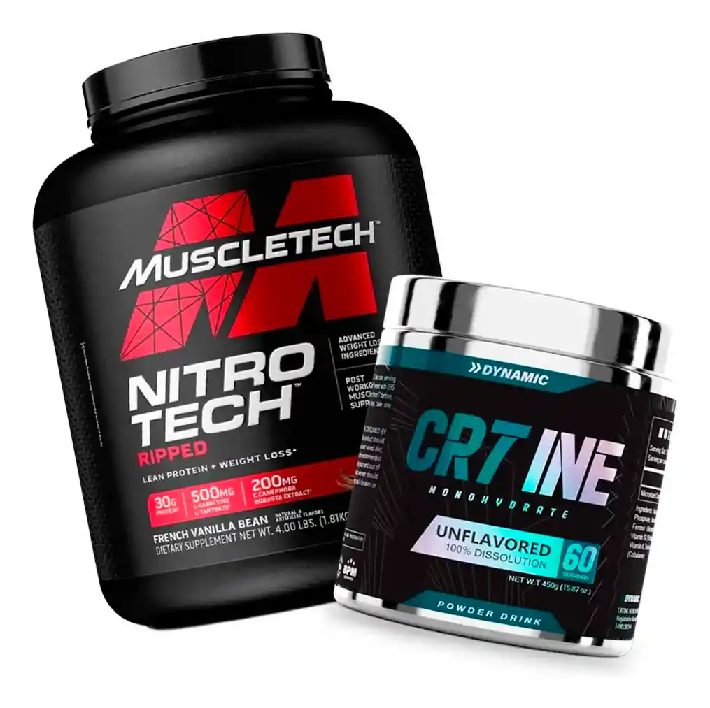 POR FAVOR PREGUNTAR POR EL SABOR DISPONIBLE Recibirás NitroTech Ripped 4lb + Creatina CRT-INE DYNAMIC 60 Servicios. NITROTECH RIPPED - MUSCLETECH Es la última proteína lanzada por la marca Muscletech. En esta ocasión, este nueva propuesta consiste en ofrecer un producto “Todo-en-Uno” destinado para promover la pérdida de grasa y el mantenimiento de la masa muscular, incluyendo los ingredientes más eficaces para ello. Es conocida como la proteína para tonificar. DISEÑADO PARA CONSTRUIR MÚSCULO MAGRO Los péptidos de suero tienen uno de los valores biológicos más altos (VB), un número que se usa para medir qué tan bien las fuentes de proteínas son absorbidas y utilizadas por el cuerpo, ¡lo que las hace perfectas para promover la recuperación muscular! DESARROLLADO CON INGREDIENTES PUROS Cada lote de Nitro Tech Ripped se somete a un estricto control de calidad y es probado y verificado por terceros para garantizar que cada botella cumpla con los más altos estándares de pureza, calidad y consistencia. En la fase que se conoce como “Definición” se busca mejorar nuestra composición corporal, mediante el reajuste de calorías. Ahora es momento de recortar calorías en post de ir perdiendo peso y aumentar proteínas en nuestra alimentación, así como mantener el correcto aporte de ácidos grasos esenciales. El balance energético irá en función del consumo de carbohidratos, oscilando según convenga para seguir rindiendo en el entreno. Los laboratorios de Muscletech han vuelto a crear un producto que destaca en relación de lo que actualmente se ofrece en el mercado, con una excelente composición unificando dos importantes bloques: - Matríz de proteínas - Matríz para eliminar grasas La matríz proteica que entrega NitroTech Ripped estará formada por: - Péptidos de Suero de leche - Proteína de Suero de leche - Aislado de Proteína de Suero de leche 97% De este modo, en cada scoop te entrega 30g de proteína de alto valor biológico, con una ratio de absorción muy rápido. -30 gramos de proteína -250 mg de CLA -500 mg de L-carnitina - Extracto de té verde ¿CÓMO CONSUMIRLO? Para la perdida de peso: Mezcle 1 porción (1 cucharada redonda) con 300 ml de agua fría o leche dos veces al día. Consuma de 30 a 60 minutos antes de las 2 comidas más grandes diarias. Para obtener los mejores resultados, úselo junto con la dieta y el ejercicio durante 60 días. Lea toda la etiqueta antes de usarla y siga las instrucciones provistas. FÓRMULA MEJORADA CREATINA CRTINE MONOHYDRATE DYNAMIC CON VITAMINAS Y MINERALES. Las únicas referencias son CRTINE 20 SERVICIOS 20 SERVICIOS EN BOLSA, CRTINE 60 SERVICIOS y CRTINE BLEND ACAÍ 45 SERVICIOS. Desafortunadamente, muchas marcas han intentado aprovechar la imagen para lanzar versiones imitadoras. Para asegurarte de que estás adquiriendo un producto auténtico, verifica lo siguiente: el tarro de CRTINE tiene una contramarcación en la parte inferior, el scoop también está contramarcado y cuenta con un sello de seguridad, no un sticker. Además, el polvo del producto es completamente blanco, mientras que las copias suelen presentar un tono amarillo. ¡Elige siempre la originalidad y la calidad de CRTINE! Contenido Neto: 450g Cantidad por porción: 7,5g Servicios: 60 Creatina 5g Registro INVIMA: RSA-0026309-2023 Registro FDA: 14981282544 MATERIA PRIMA IMPORTADA. Laboratorio autorizado: 3Q S.A.S Sabor: Sin sabor CREATINA CRTINE DYNAMIC Creatina CRTINE ha demostrado ser un potente impulsor de energía, fuerza y resistencia. Su fórmula mejorada no solo eleva la capacidad deportiva, sino que también incorpora vitaminas y minerales para mejorar el metabolismo y la salud en general. La fusión de vitaminas, como D, C y selenio, contribuye a incrementar la energía, reducir calambres, aliviar la tensión muscular y prevenir enfermedades cardíacas y artritis. Los minerales, como zinc e hierro, combinados con creatina, mejoran la absorción de nutrientes, regulan la presión arterial y aceleran la recuperación post-entrenamiento. Con la máxima concentración permitida de creatina, CRTINE también ofrece beneficios neuroprotectores, mejorando la energía cerebral, mitigando la fatiga mental y potenciando la función cognitiva, incluyendo la toma de decisiones y la memoria. ¿COMO CONSUMILOR? Agregue 1,5 Scoop de Creatina Crtine Dynamic en un vaso de 235 - 295ml con agua o bebida de tu preferencia (Tomar antes y despues de la actividad física). RECUPERACIÓN MUSCULAR La creatina monohidratada mejora la capacidad de recuperación muscular al aumentar la disponibilidad de energía en las células musculares. Combinada con proteínas, acelera la recuperación después del ejercicio, permitiendo entrenamientos más frecuentes e intensos. AUMENTO DE LA FUERZA La creatina ha demostrado mejorar la fuerza muscular, lo que puede resultar en entrenamientos más intensos y efectivos. El aumento de la fuerza, junto con la proteína adecuada, contribuye al desarrollo de masa muscular magra. HIDRATACIÓN CELULAR La creatina favorece la hidratación celular, lo que puede aumentar el volumen de las células musculares. Este efecto, combinado con el aporte de proteínas, promueve un entorno propicio para el crecimiento y la plenitud muscular. MEJORA EL RENDIMIENTO La combinación de proteína y creatina mejora el rendimiento general durante el ejercicio, permitiéndote entrenar con mayor intensidad y resistencia, lo que es fundamental para el aumento de masa muscular. Garantía del vendedor: 10 días ¿COMO CONSUMIRLO? Máximo 2 servicios al día, aporta 15g de Crecrack, el efecto positivo se produce con una ingesta diaria de 7,5g de Crecrack recomendada durante al menos 4-6 semanas. Registro INVIMA RSA-0018738-2022 IMPORTANTE: Todos nuestros productos son originales y certificados con registro INVIMA, directamente desde el laboratorio, sus fechas de vencimiento no son próximas, nuestros productos son totalmente nuevos. Puedes visitar nuestra t