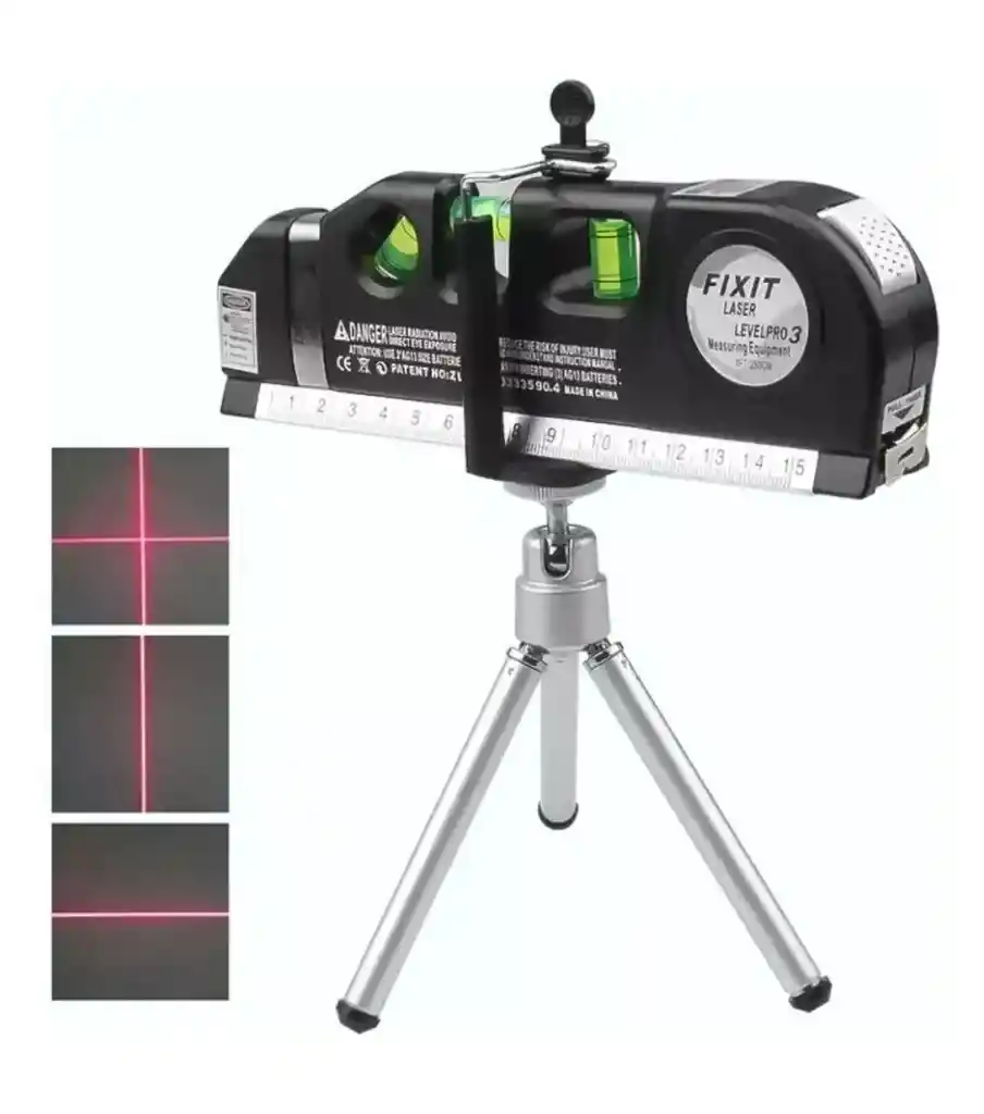 Logra mediciones y alineaciones precisas en segundos con este nivel láser multifuncional LevelPro 3, una herramienta esencial para instaladores, decoradores, electricistas, carpinteros y amantes del bricolaje. Incluye nivel burbuja, cinta métrica y láser de línea recta, todo en un solo equipo compacto, ahora con trípode ajustable para mayor comodidad y estabilidad. Beneficios principales: Alineación precisa en proyectos de instalación, perforación, nivelación y decoración Láser rojo de proyección lineal: línea horizontal, vertical y cruzada Trípode de aluminio regulable que permite manos libres y trabajo estable Incluye 3 burbujas de nivel para mediciones tradicionales en horizontal, vertical y 45° Cinta métrica retráctil de 2.5 metros incorporada Ideal para tareas en interiores como instalación de cuadros, enchufes, repisas, pisos o molduras Características técnicas: Modelo: Level Pro 3 con soporte Proyección láser: línea horizontal, vertical y cruzada Alcance aproximado del láser: 2 a 5 metros en interiores Precisión de línea: ±2 mm/m Burbuja de nivel: 3 niveles (horizontal, vertical y diagonal) Longitud de cinta métrica: 2.5 metros Material: plástico ABS resistente al impacto Tipo de láser: Clase IIIA (seguro para uso doméstico) Alimentación: 3 baterías tipo botón (incluidas o no, según proveedor) Trípode: aluminio liviano, altura máxima 17 cm aprox., rosca estándar Dimensiones y peso aproximado: Nivel láser: 19 cm × 6 cm × 2.5 cm Trípode plegado: 18 cm de largo Peso total: 350 g aprox. (con trípode)