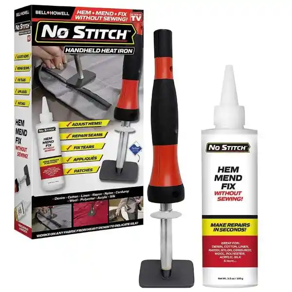 Es la manera fácil de hacer dobladillos, remendar y arreglar tu ropa. Simplemente, aplica el polvo adhesivo especialmente formulado sobre la tela y pasa la varilla térmica sobre la zona que deseas pegar para obtener costuras resistentes en solo minutos.