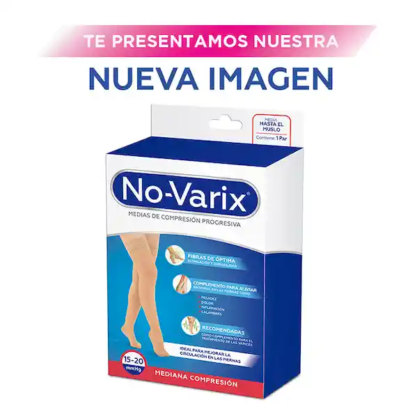 Media Hasta El Muslo Para Dama de Compresión Mediana 15-20 Mm/Hg Con Refuerzo En Talón y Puntera Encaje Siliconado 4G Opaca