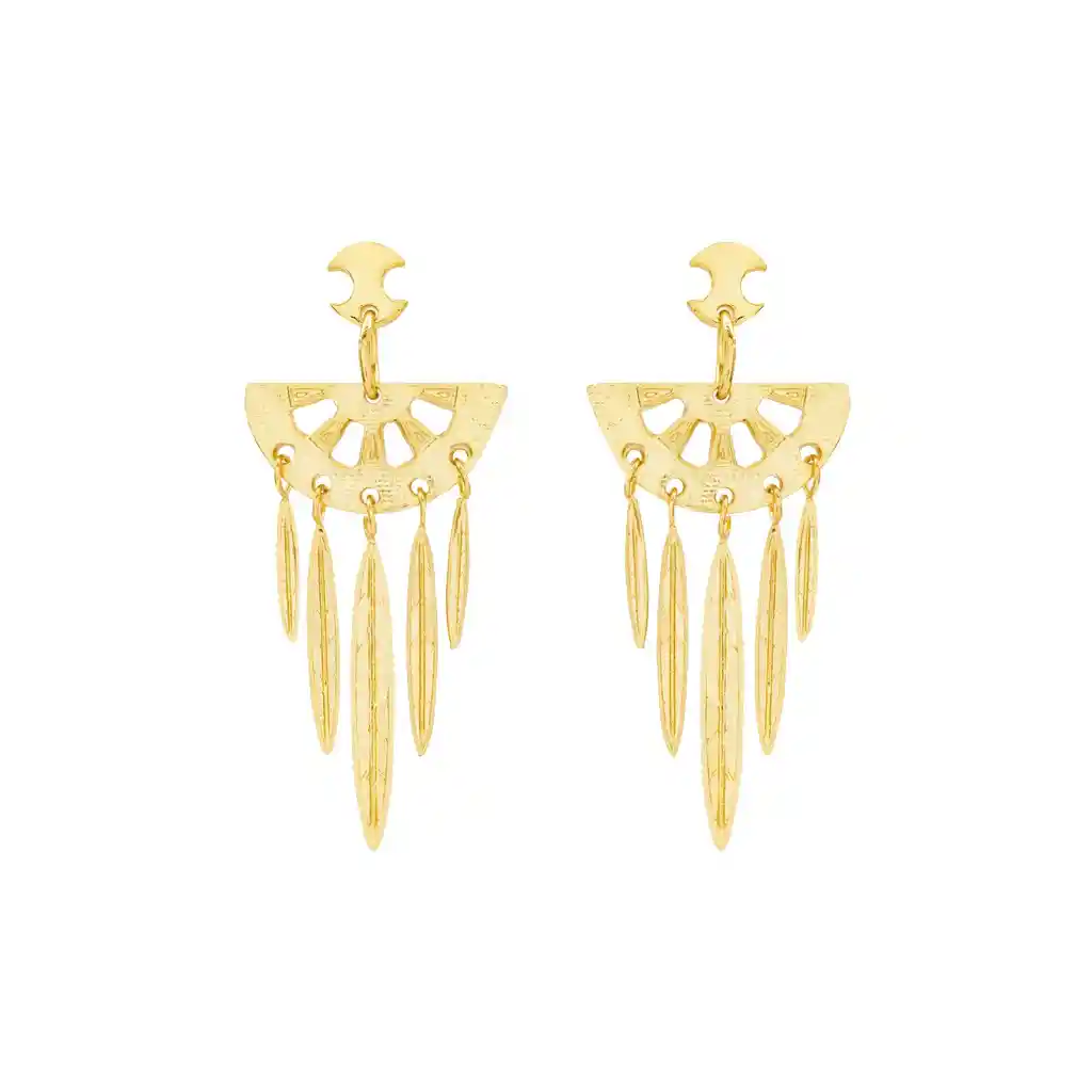 Nuestros aretes han sido elaborados artesanalmente en Bronce y diseñados para conectarte con tu esencia y fuerza interior. Ideal para looks de verano u ocaciones especiales, donde deseas sobresalir por tu confianza y seguridad en tí misma. Cuidados de tus joyas: Almacenar las joyas en un lugar seco. Para conservar tu pieza te aconsejamos quitártelos si te metes al Mar o a la piscina. Evitar el contacto con aceites, perfumes y otros cosméticos. No utilizar productos químicos abrasivos o a base de alcohol para limpiar las joyas. Un poco de agua tibia y un paño suave son suficientes.