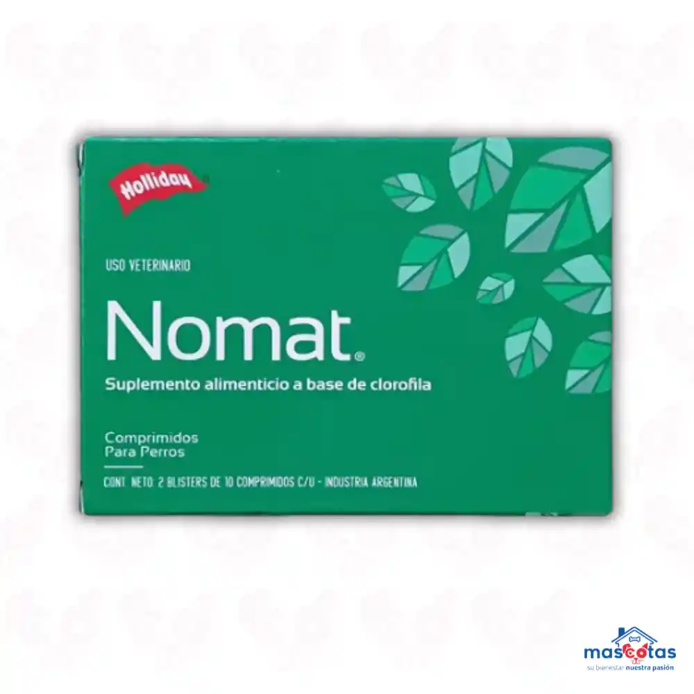 NOMAT es un desodorante oral en tabletas para perros formulado con clorofila cuprosódica, que actúa como biomodulador detoxificante y antioxidante para eliminar el mal olor bucal y corporal, desodorizar la orina de hembras en celo, y mejorar la salud gastrointestinal e inmunológica del animal. Se administra de forma oral y las dosis varían según el peso del perro, duplicándose para perras en celo ¿Para qué sirve? Elimina olores: Reduce el mal aliento y el olor corporal en perros. Desodoriza hembras: En perras, elimina el olor estrual y desodoriza la orina, evitando la atracción de machos. Mejora la salud: Actúa como un antioxidante que oxigena los tejidos, creando un medio desfavorable para bacterias anaeróbicas y mejorando la salud gastrointestinal e inmunológica. ¿Cómo se utiliza? Se administra por vía oral en forma de tabletas. Dosificación: Perros de hasta 10 kg de peso: 1 comprimido cada 24 horas. Perros de más de 10 kg de peso: 1 comprimido cada 12 horas. Perras en celo: Duplicar la dosis para obtener un mayor efecto desodorante.